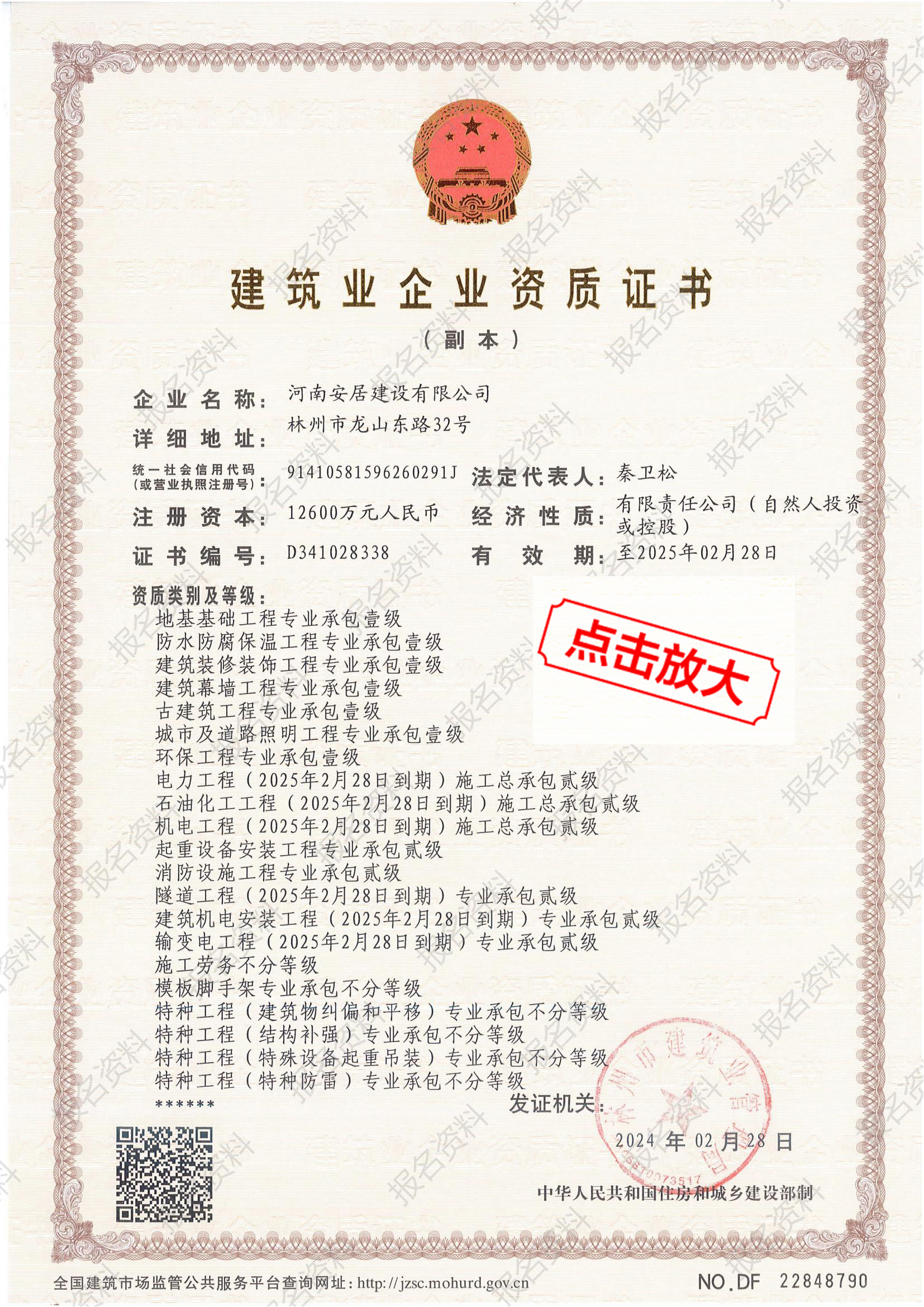 房建、市政十項一級,共二十余項資質